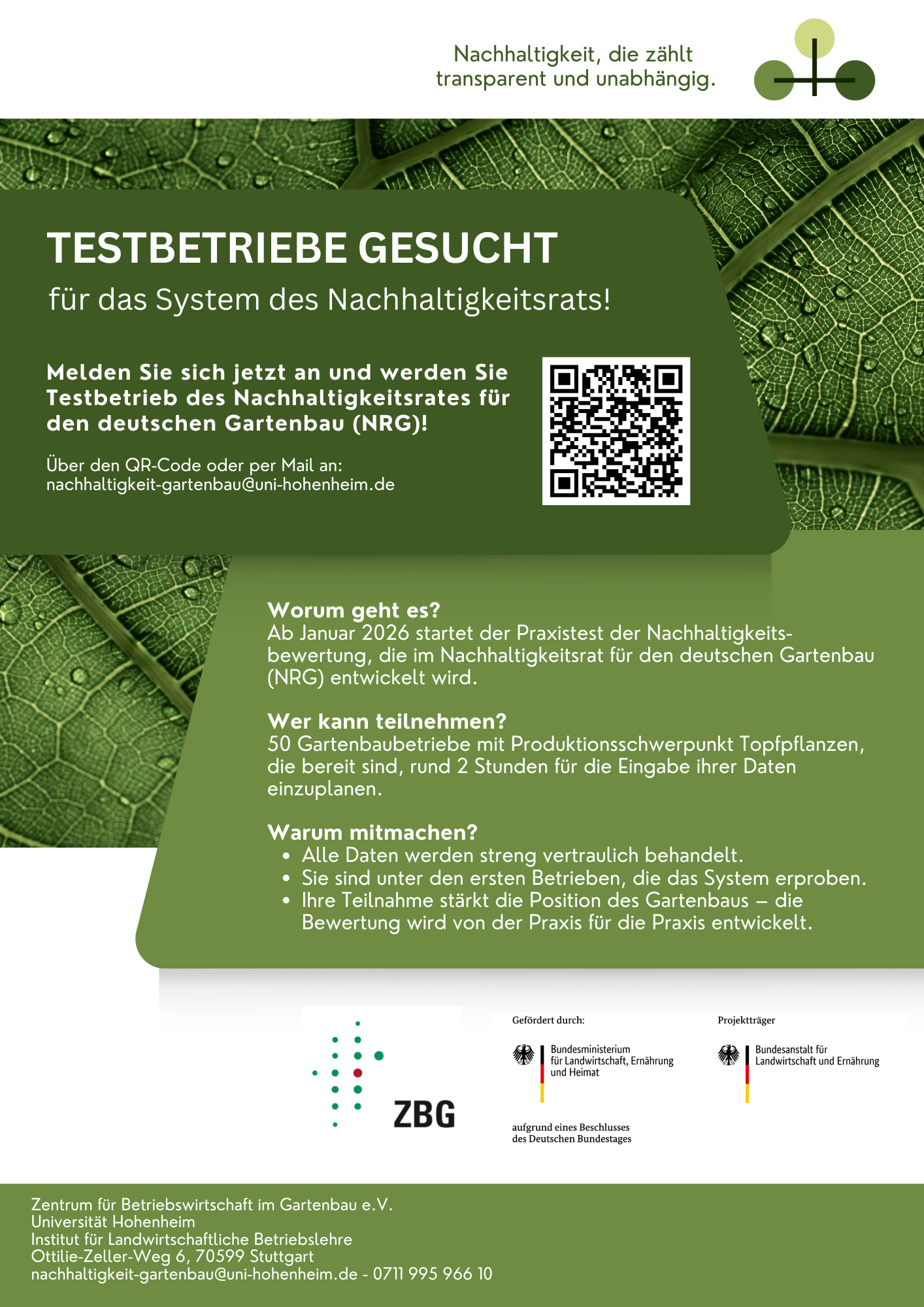 Einer transparenten und unabhängigen Nachhaltigkeitsbewertung kommt im deutschen Gartenbau eine immer größere Bedeutung zu: Banken müssen die Berichtspflichten der EU berücksichtigen, was sich auf die Kreditvergabe und damit auf die Investitionen in der Branche auswirkt. Gleichzeitig möchten Gewerkschaften sicherstellen, dass die Interessen der Arbeitnehmenden im Fokus stehen und soziale Aspekte bei der Transformation des Gartenbaus nicht vernachlässigt werden. Zudem sucht der Handel nach Möglichkeiten, sich gegenüber den Verbraucherinnen und Verbrauchern als nachhaltig zu positionieren und erwartet dabei klare Standards. Diese Vielzahl an Anforderungen macht einheitliche, transparente Bewertungskriterien notwendig, die von allen Stakeholdern akzeptiert werden. Diese Kriterien müssen ökologische, ökonomische und soziale Aspekte gleichermaßen berücksichtigen.